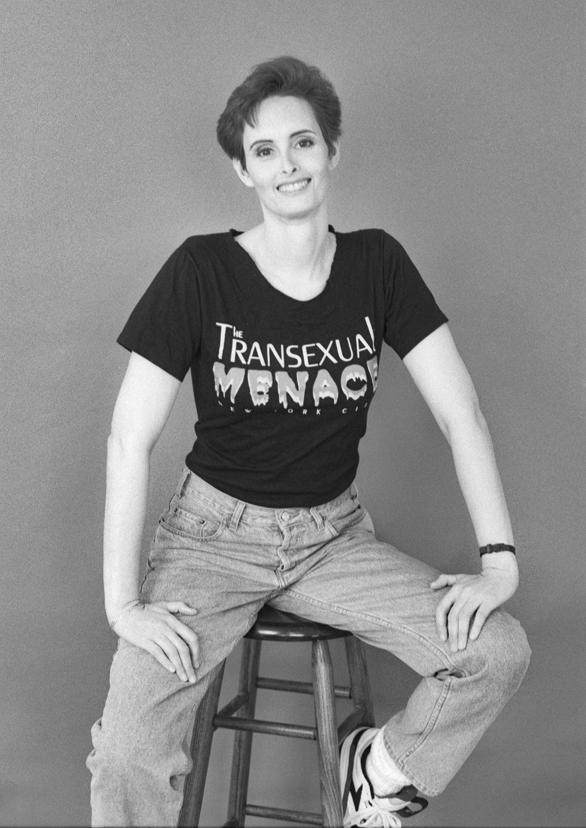 "You say we want to 'pass' as women. Well, I don't pass. I wear this Transexual Menace logo every place that I go. Between the two of us, only you pass as a woman. If, as de Beauvoir held, 'One is not born a woman, but becomes one,' if femininity is an invention of men foisted on women, if feminine behavior is a learned cultural performance of hair, clothing, voice, gesture, and stance so one is perceived as a female, then by presenting yourself as a woman it is you who have been co-opted into traditional sex roles, you who serve their institutions, and you who are performing here."  |